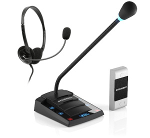 Дуплексное переговорное устройство "клиент-кассир" с возможностью переключения в режим  «Симплекс», возможностью подключения гарнитуры (в комплекте) и выходом для записи переговоров. В комплекте идёт пульт кассира, панель абонента, гарнитура и блок питания.