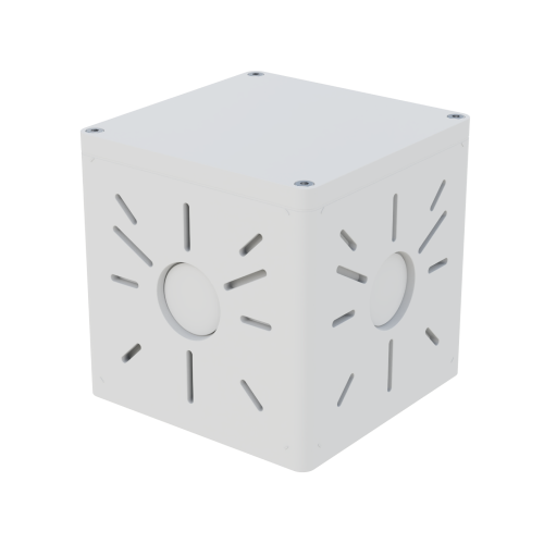 Центральный элемент системы. Закрепите свыше 853 моделей камер на коробку максимально быстро, надежно и эстетично. Коробку можно закрепить к любой плоскости. Также с помощью других элементов системы: кронштейн, вынос, скоба коробку можно закрепить там, где нужно вам. Отличительная черта нашей коробки – расположение крепежных прорезей в форме десятилистника. Эти прорези являются направляющими для саморезов. Вам достаточно выбить или высверлить центральное отверстие на грани коробки, на которую вы хотите закрепить камеру, просунуть туда провода и расположить фланец камеры так, чтобы крепежные отверстия на камере совпали с прорезями на коробке. Остается только прикрепить камеру, вкрутив саморезы в коробку.