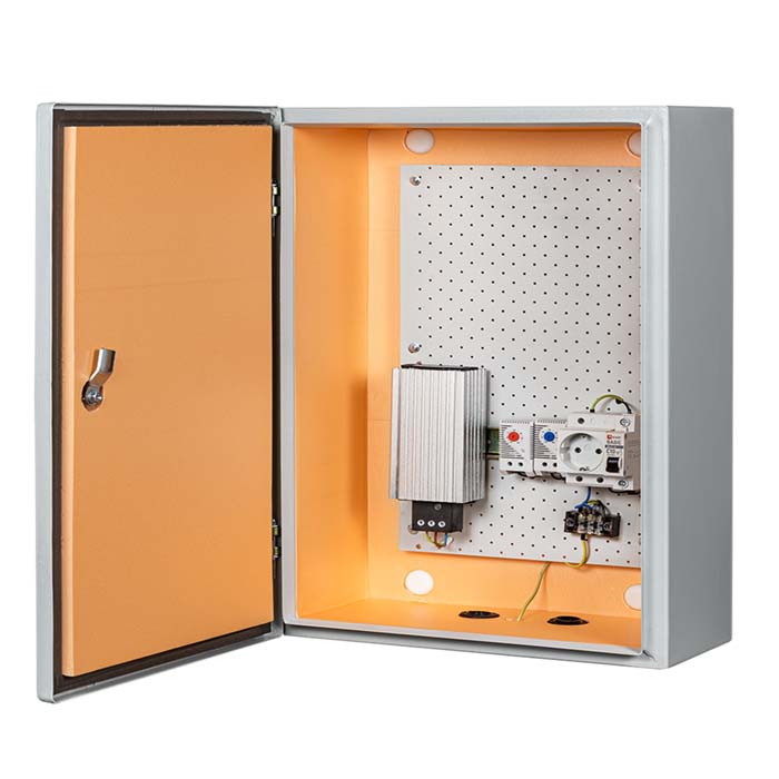 Комплектация: утеплитель из пенополистирола, замок 1 шт, ключ 1 шт, монтажная плата 1шт, гермовводы 2шт, розетка 1 шт, автоматический выключатель 1шт, термореле 1 шт,