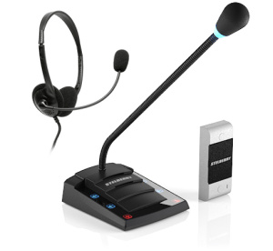 Дуплексное переговорное устройство "клиент-кассир" с возможностью подключения наушников (в комплекте) и выходом для записи переговоров. В комплекте идёт пульт кассира, панель абонента, наушники и блок питания.